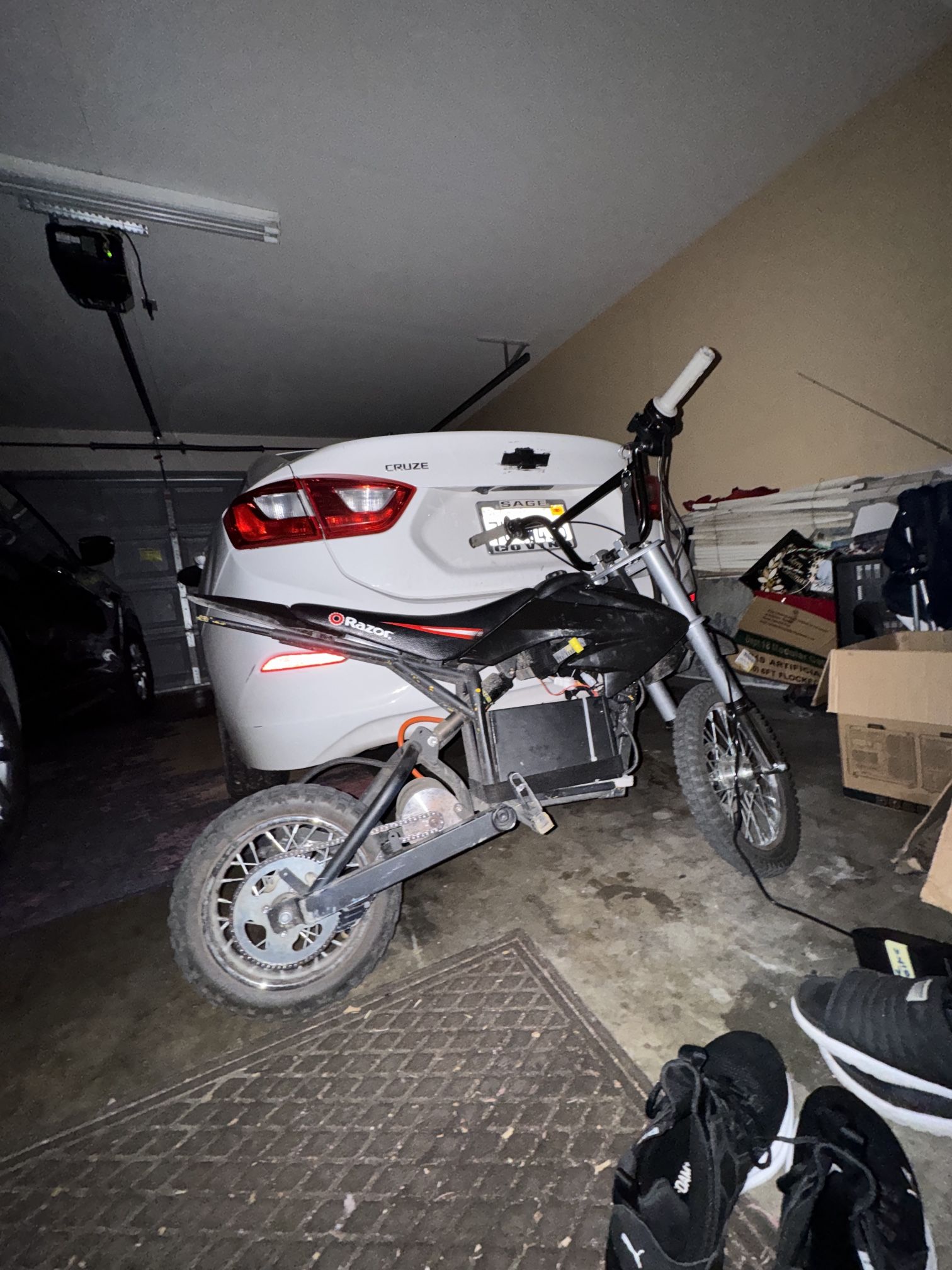 recently got a collapsed lung so I won’t be really riding this anymore. Usually use it to commute to work when my cars not available. Easily gets 45-50 mph, has like 4 hours of range. Razor mx650 frame - $700 72v battery - $500 72v 3000w brushless Kunray my1020 - $300 Fardriver ND72450 with Bluetooth dongle - $200 200mm rear shock -$100 Surron throttle + extra grips - inconsequential Volt meter + 3 keys - $15 Meroca 4 piston brakes - $40 3 speed mode switch - inconsequential E&C T8F chain and sprockets - $80 Total: $2000 Price can be negotiated within reason, price is so low due to my circumstances and needing cash as I can’t work rn.