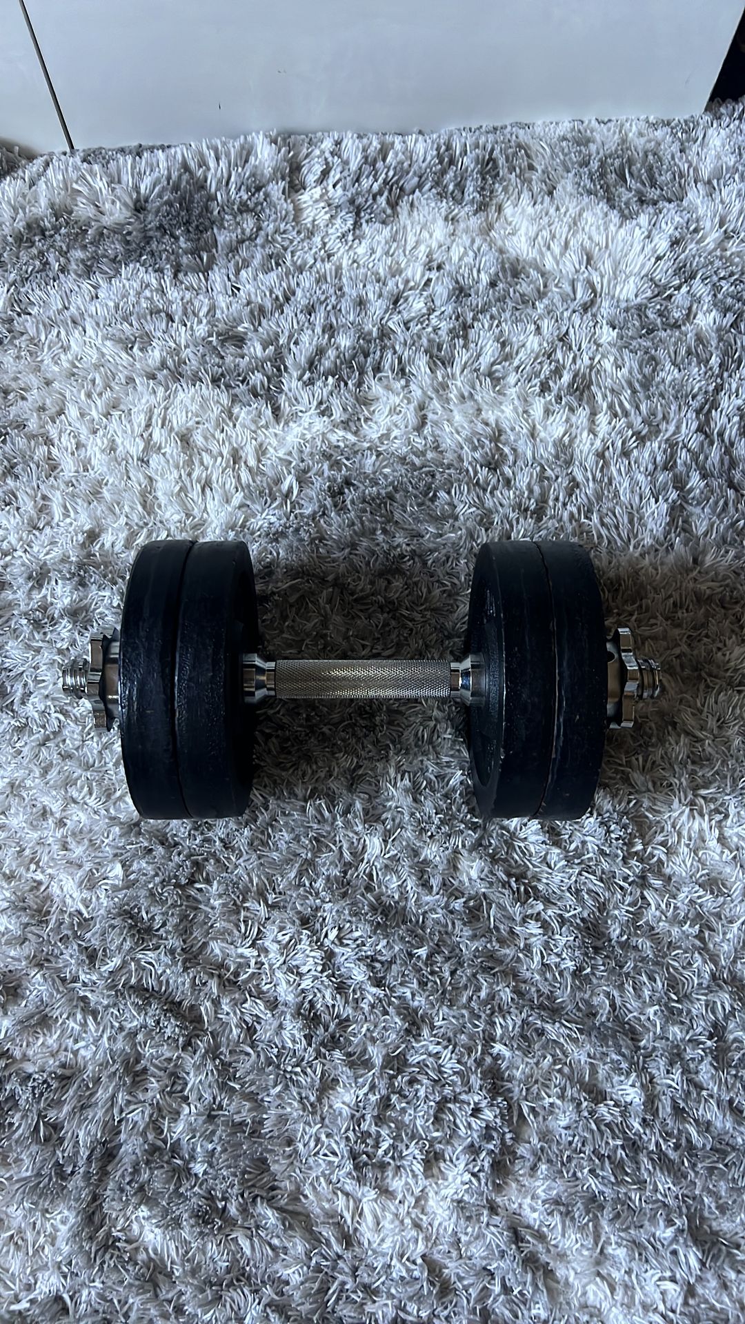 30 pound single dumbbell each plate is 7.5 and there’s four