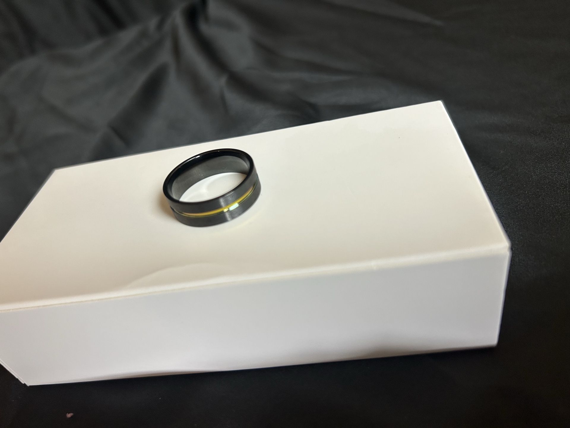 ✨ Men’s Black & Gold Stripe Band Ring – Size 13 | Trades Welcome! This sleek black ring features a thin gold stripe accent running through the center