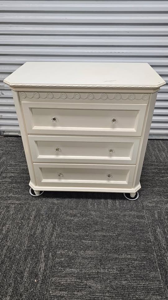 Cream color 3 Drawers Width: 36 inches, Height: 36 inches, Depth: 20 inches