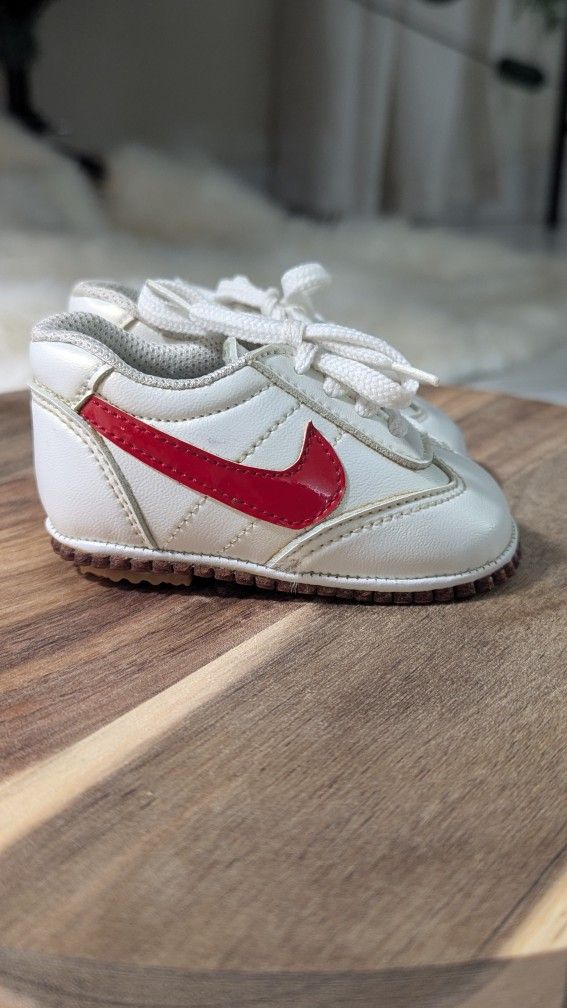 Never worn Nike baby shoes. Exact size number is unknown but I included a photo with it measuring a little over 4 in.