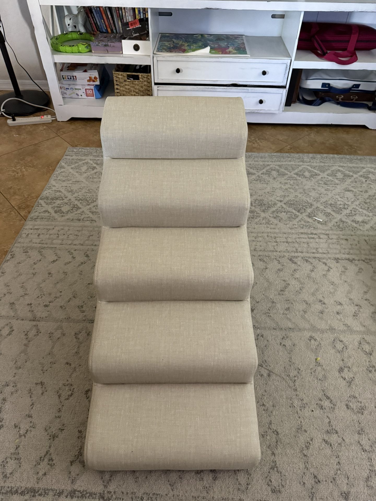 Dogs steps - barely used. For climbing on to bed or couch, my dog did not use it at all, you’ll be surprised to see it’s in like new condition. It’s a very nice design and the steps are padded, easy to clean. $100 obo