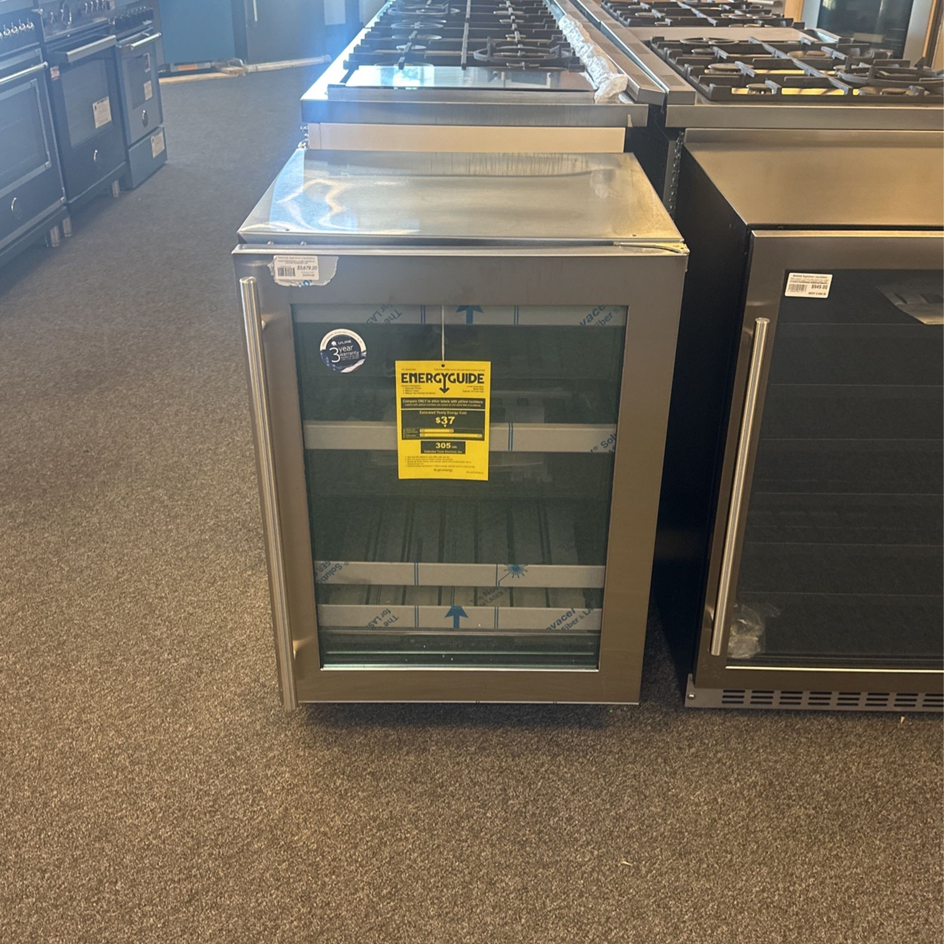 24 Inch Beverage Center with LED Lighting, 19 Adjustable Positions, Holds Up to 14 Wine Bottles and 68 Bottles, Star-K Certified, and Stainless Steel Interior: Stainless Steel, Right Hinge, Lock See Ted for details!!