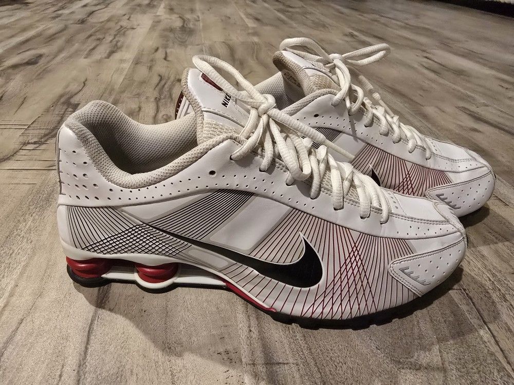 These are a vintage pair of shox that you can't even hardly find online. Look them up online. Nike Shox R4 Flywire White Black Varsity Red size 10.5. Good condition.