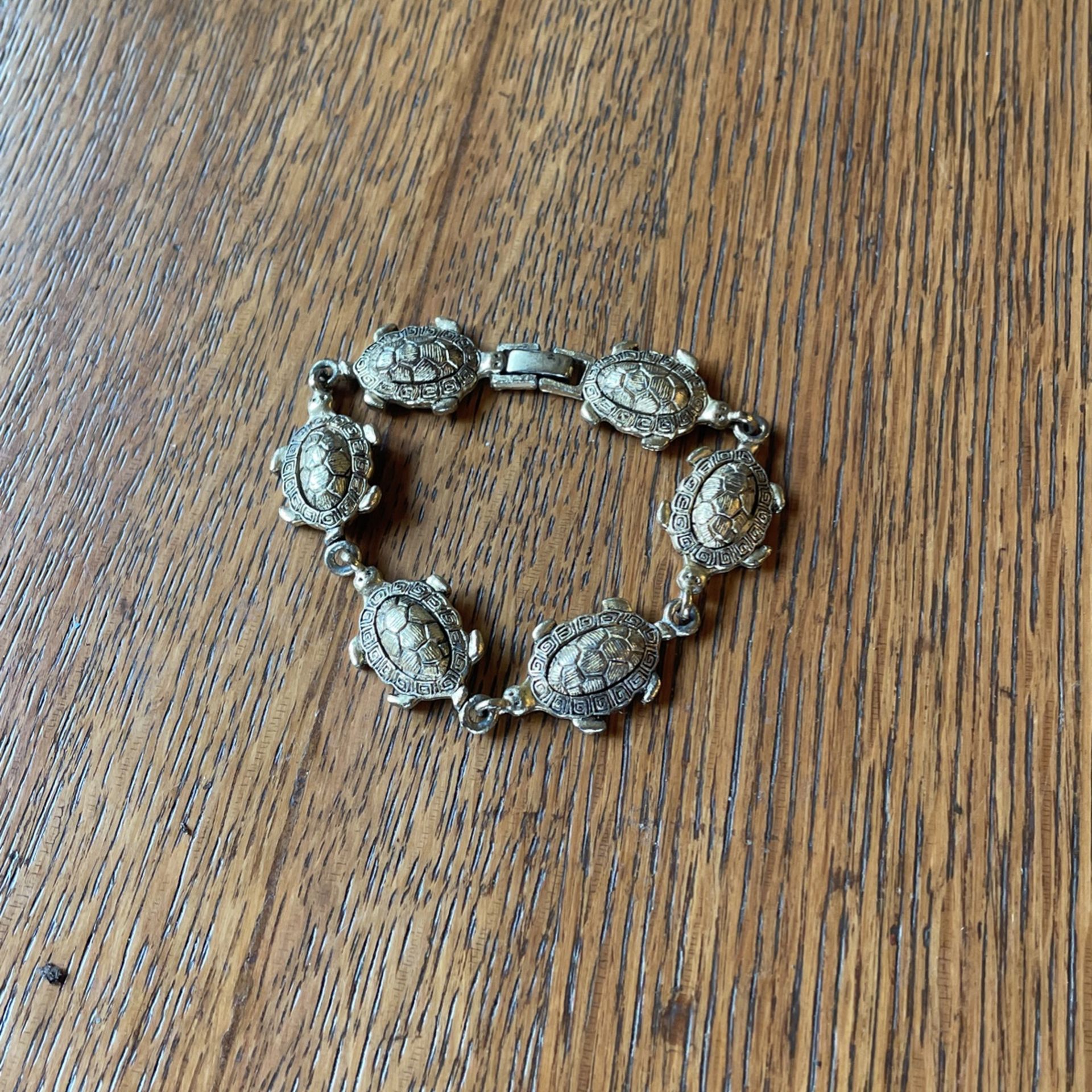 7 1/2” linked bracelet with turtle motif! Very nicely made! Unmarked