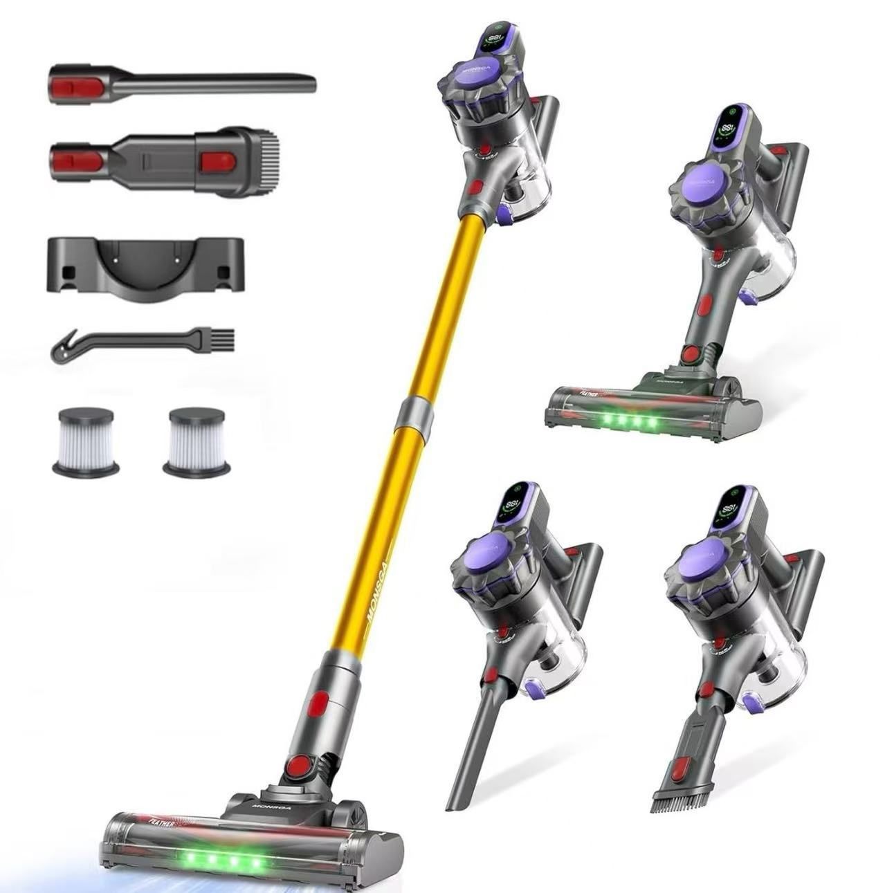 MONSGA Cordless Vacuum Cleaner, 45KPa 400W Stick Vacuum for Home, 50Mins Anti-Tangled Vacuum Cleaner with Charging Dock, Light-weighted Handheld Vacuum for Pet Hair/Carpet/Floor, LED Touch Display,MV3
