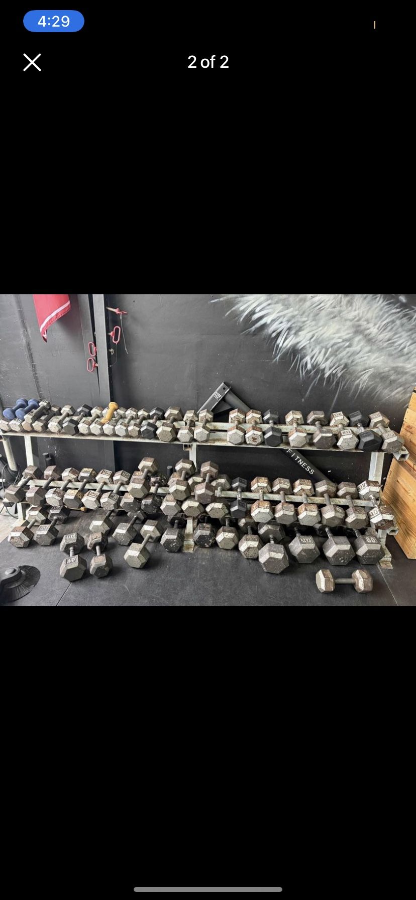 Tons of hex dumbells pairs 90c a pound 10s-80s