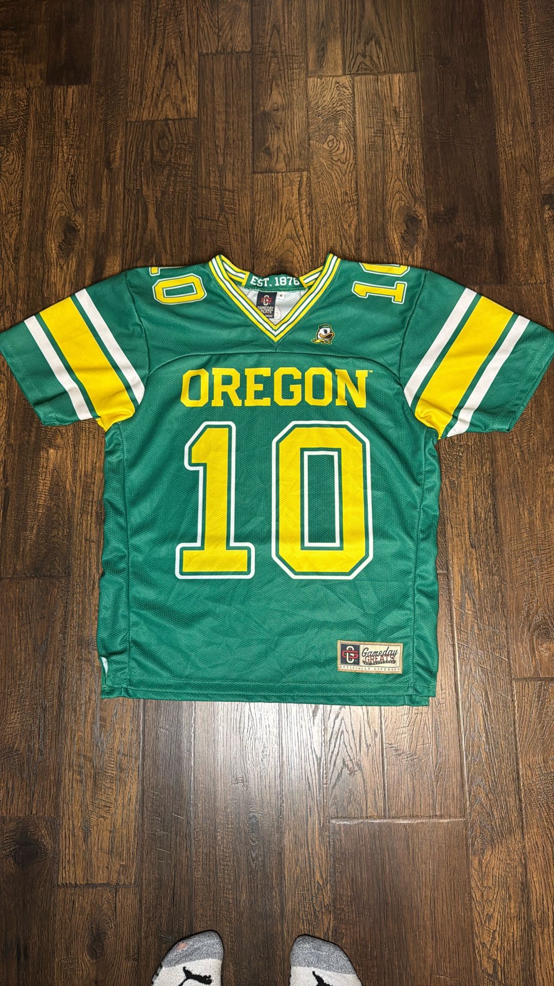 *BRAND NEW* Never worn once. It was a Christmas gift this past Christmas. Never used or wore it. This is the NIL edition jersey it’s a more cheaper and affordable option for fans that can be customized with your favorite player on the Oregon Ducks. I want the official authentic replica jersey which I ended up getting so just trying to get rid of this one. I am pretty firm on the price point. There is some leniency, but I’m only offering what I think is a respective, fair price point. I have retail price comparison in the cover photo to show the discounted deal I am offering. The jersey is of former Oregon QB Bo Nix who is now the starting QB of the Denver Broncos. Any and all Oregon fans would enjoy this jersey!