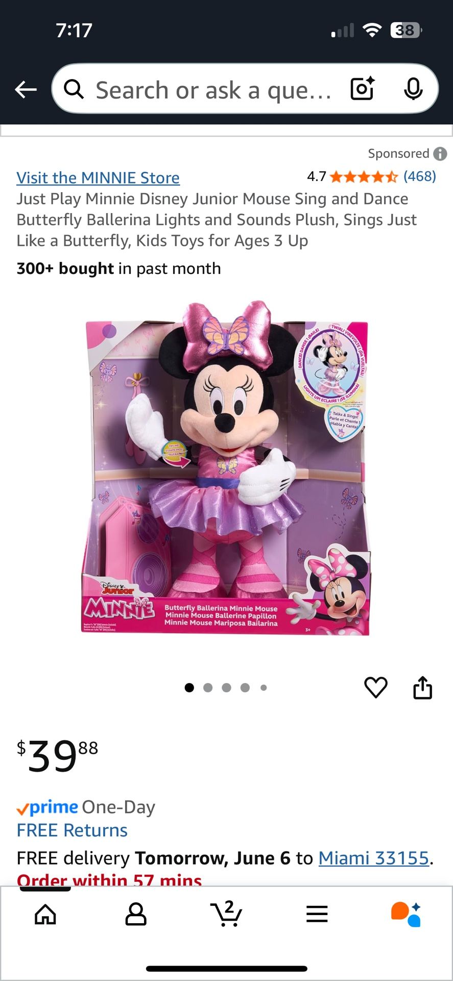 Moves and sings! Very lightly used, 15 inches high. Lights up and dances. Located off of Bird Road and 67th Ave. in Miami Please see my other Disney items