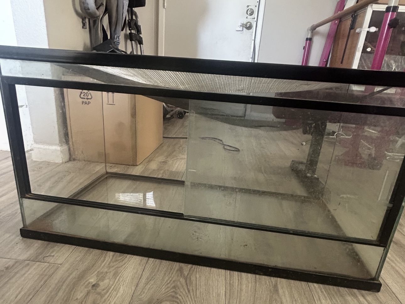 55 Gallon Terrarium With Decor, Heat Lamps, Heat Mats, And Heat Mat Guage