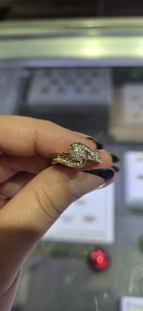 This ring has amazing clarity diamonds! 10k solid gold, size 7! Super sparkly π. Contact me with any questions or offers π!