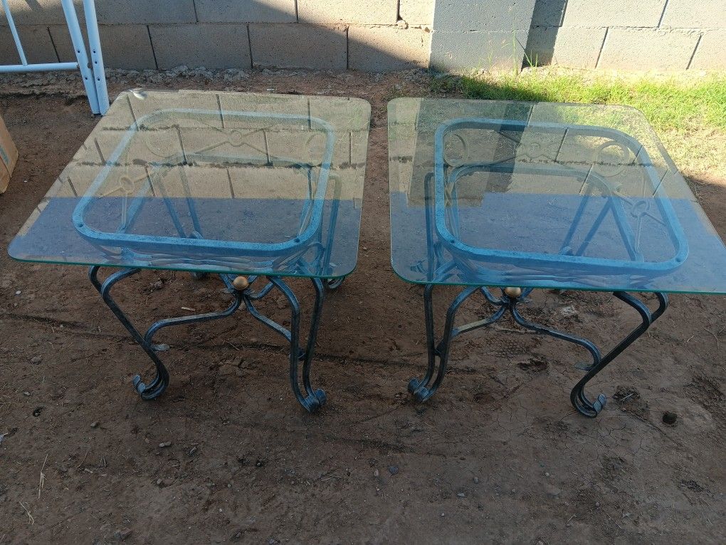 2 end tables Glass tops Normal wear $20for both or best offer Needs some TLC 22 inches tall Glass 2ft by 2ft