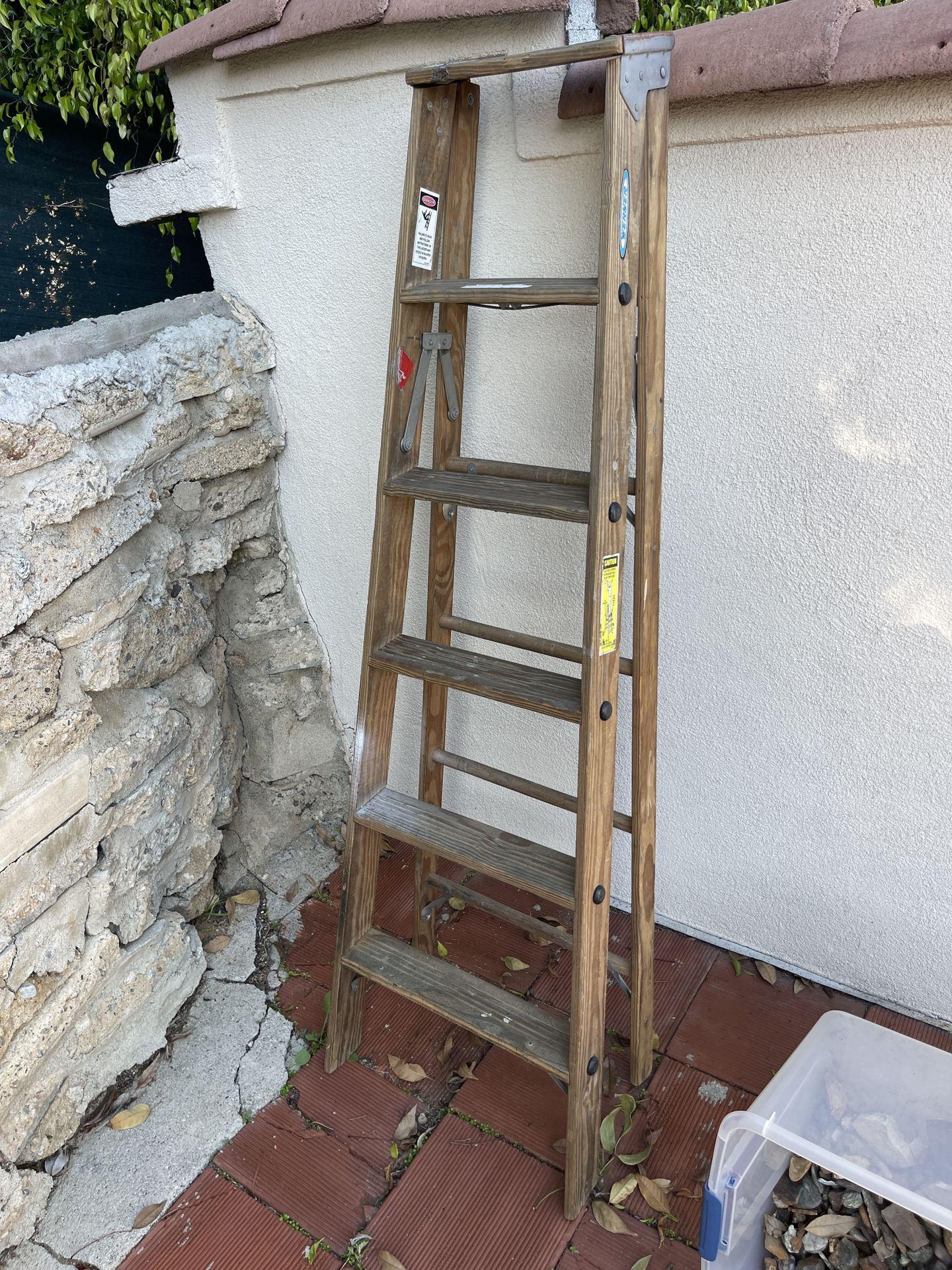 Werner Wood Ladder Works Great Solid just selling because I got a taller one and don’t need this one anymore Good solid affordable ladder. It’s from the early 1990s it’s 6’ 6 foot