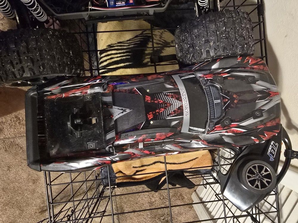 Traxxas Hoss comes with extra tires shocks tools repair parts two high capacity batteries charger. GPS telemetry system upgraded speed gears. You get everything in the pictures. $450.00 O.B.O.