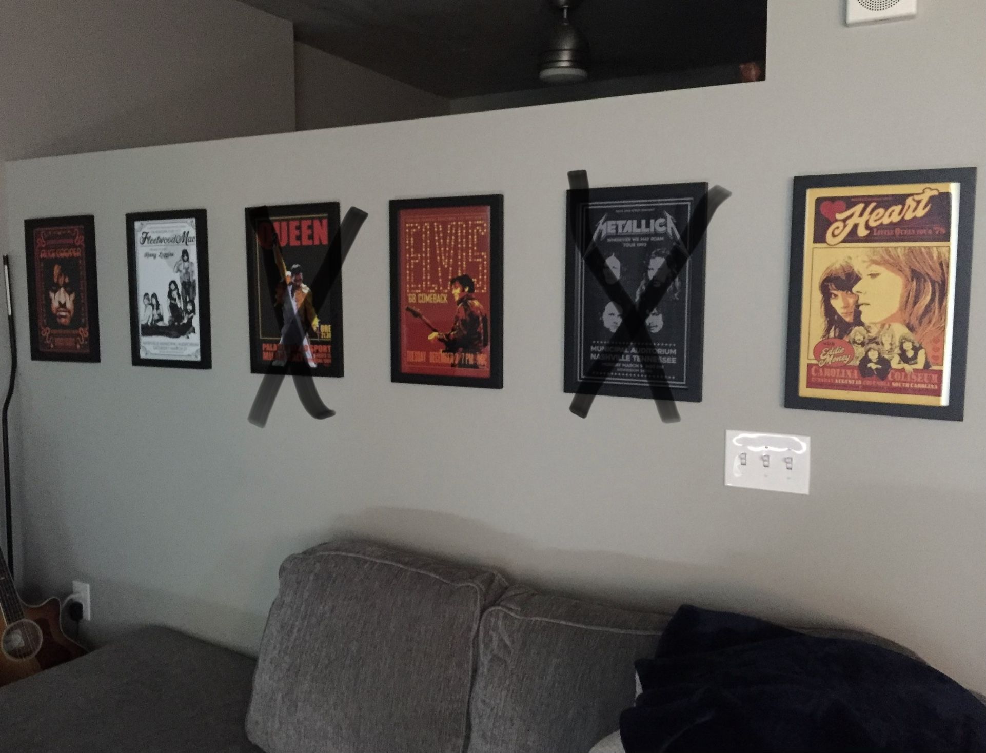 $30 per poster or $100 for all 4 (frames included) Available: Heart, Elvis, Fleetwood Mac, Alice Cooper