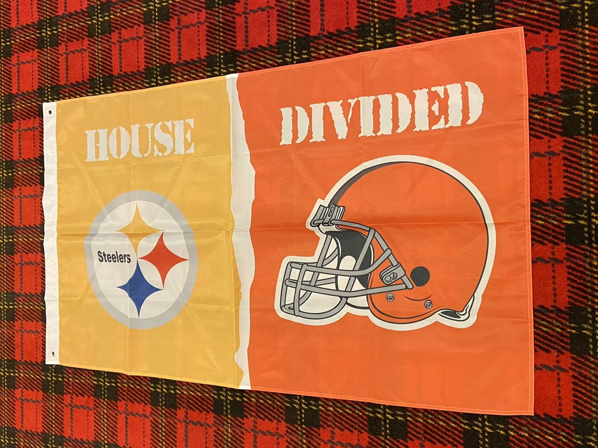 Brand new 3 foot by 5 foot. You can hang it up inside or outside. Would make a great addition to any man cave. Cleveland Browns banner flag Pittsburgh Steelers banner flag