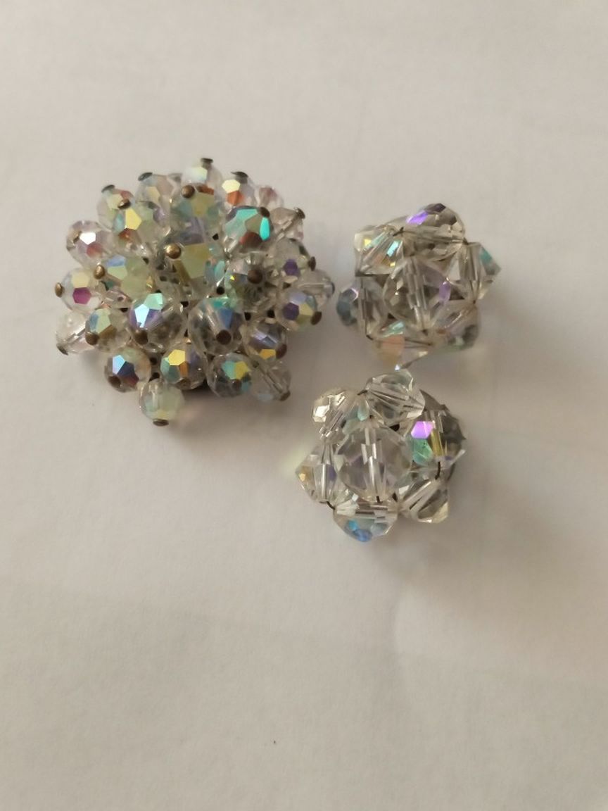 Set Vintage Brooch And Earrings