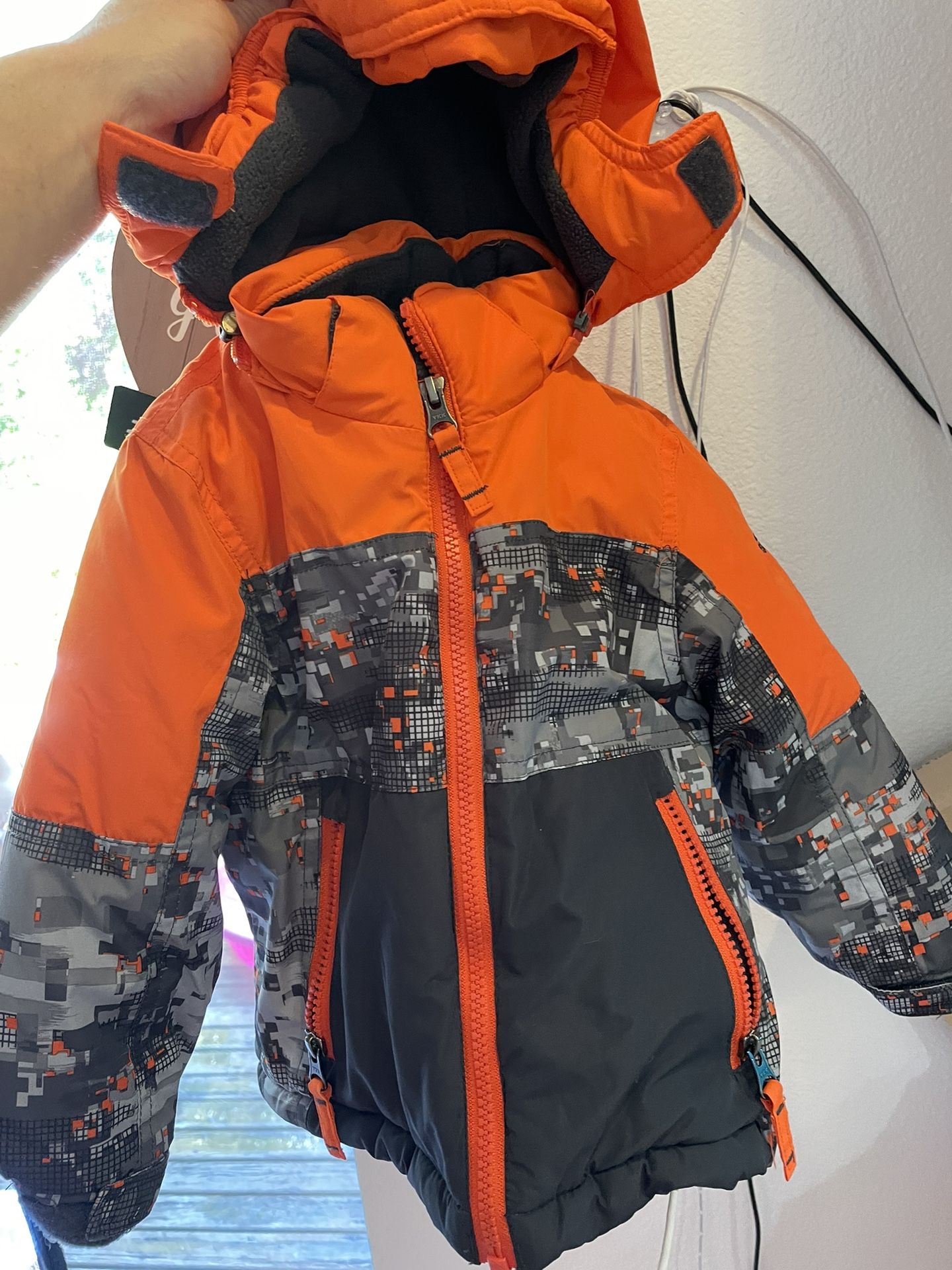 Orange jacket has a detachable hood. Both are warm jackets for winter with linings and insulation. Both barely used. No stains or rips. Non smoking and no pet home.