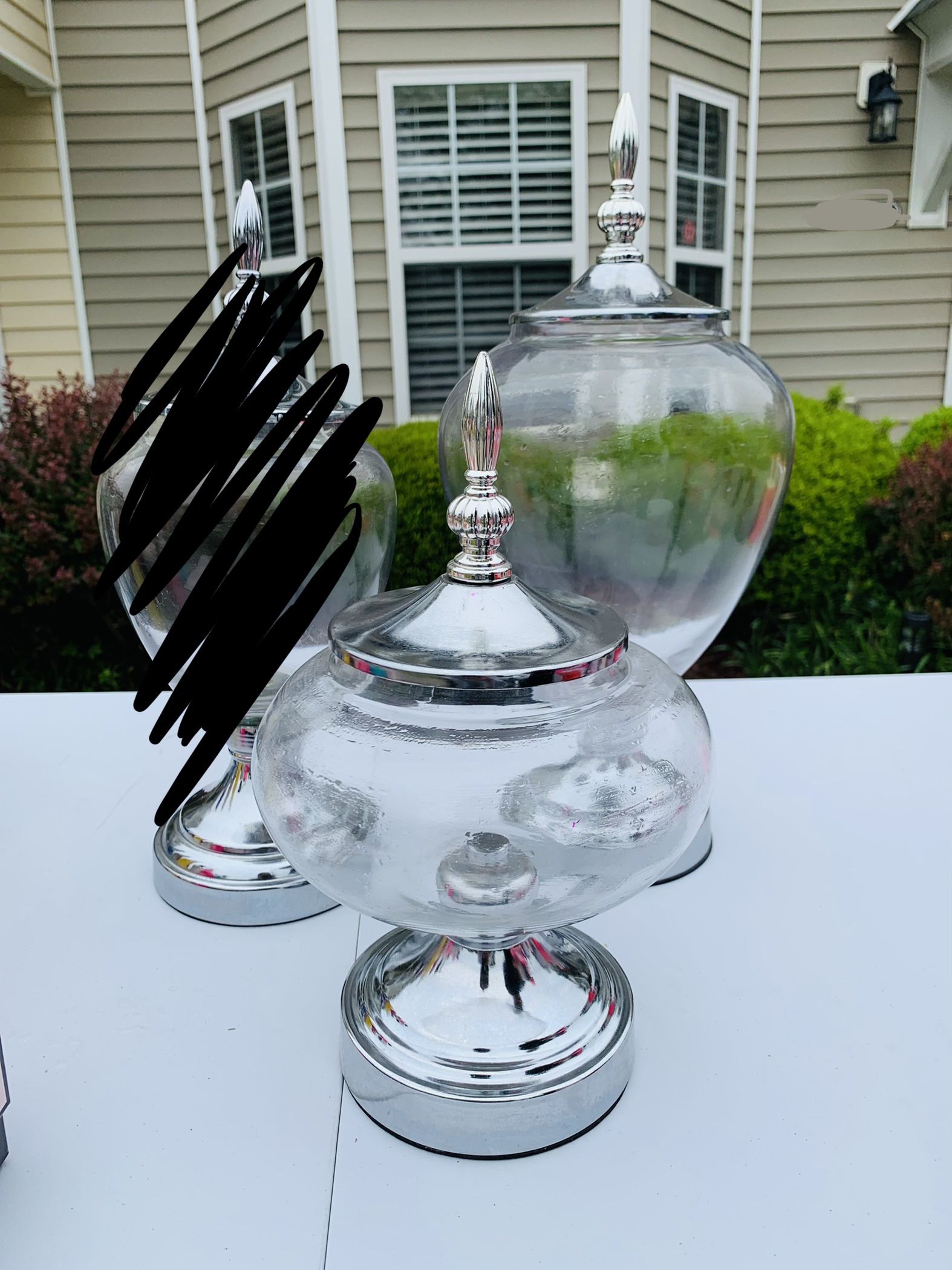 Glass novelty jars, party favor jars, cookie jars… Middle one broke 🙁 $12 for the remaining 2