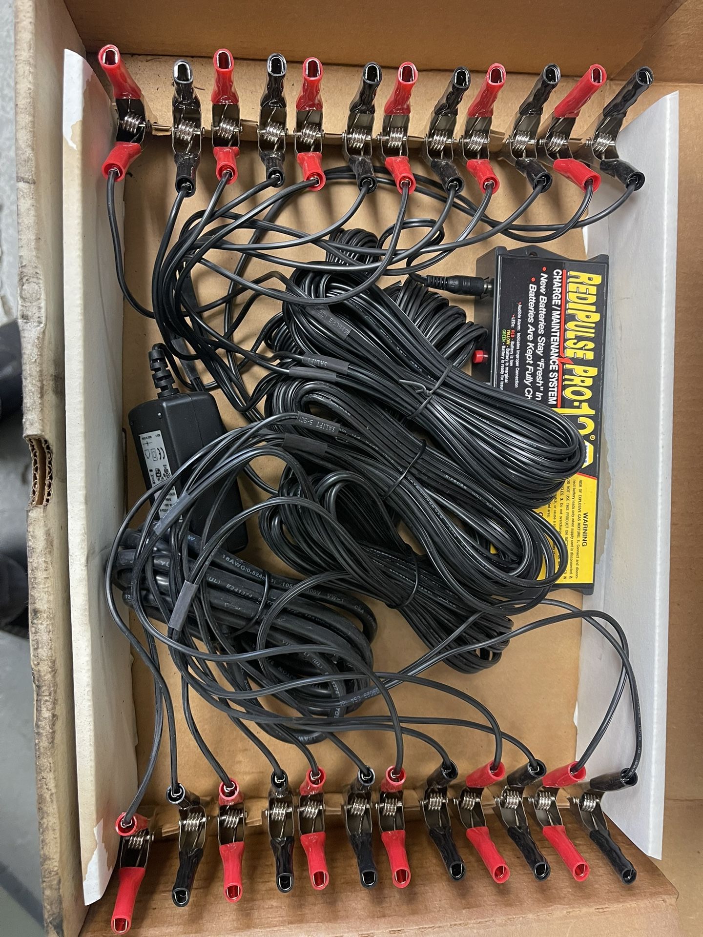 New old stock Battery maintenance system. Keep up to 12 batteries charged up. Never used still in box. Sells for 250.00 retail. 150.00