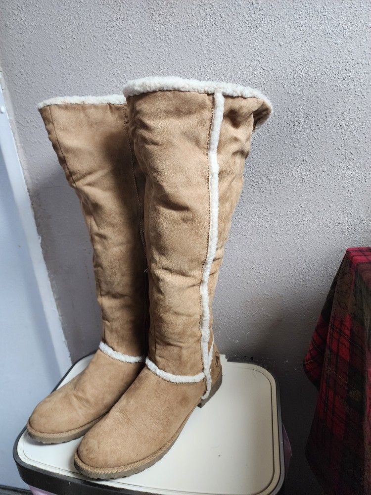 Beige Suede Airwalk Boots, size 10. Knee high, fully lined and cuffable. Pre-owned in very good condition. Shipping or front door pickup available. Ocala, FL. 34475