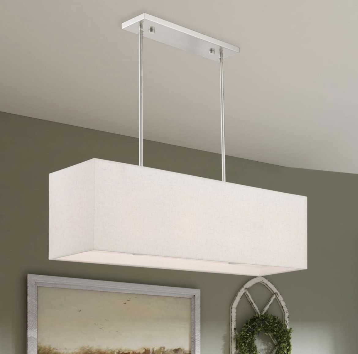 Retails for $440 plus taxes Im asking $240 or best offer Brand new in the box. Model# 41155-91 The Summit is a modern and functional linear chandelier which has a beautiful off-white fabric hardback shade and a white acrylic diffuser which will ensure soft illumination in any room. Length: 36.00" Width: 8.50" Height: 11.50" Check my profile for more lights like this I have available. Thank you Outdoor lighting wall light lights led LEDs lamp lamps ceiling fan fans garage porch deck exterior Hampton Bay patio deck patios drive way driveway driveways outside farm house home chandelier remodeling remodel living room dining room basement rustic rent Rental Bar kitchen man cave sun room hot tub fire place