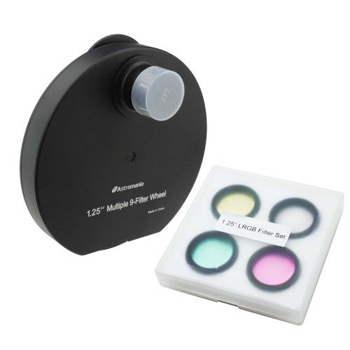 Astromania 1.25" Multiple 9-Position Filter Wheel for Telescope - with LRGB Filter Set The 1.25" Superior Quality Multiple 9-Position Filter Wheel re