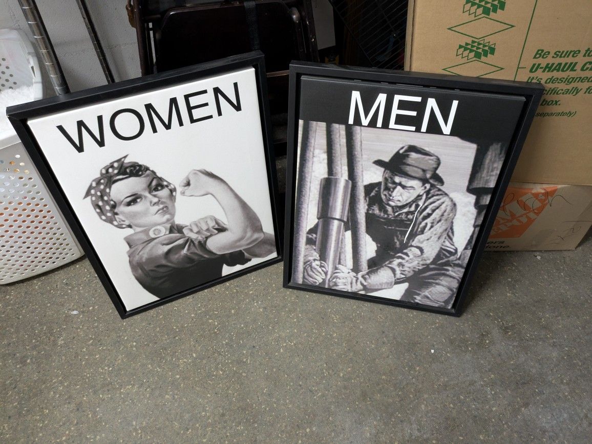 Large 26*20 inch blue collar photos. Previously used for restroom entrance.