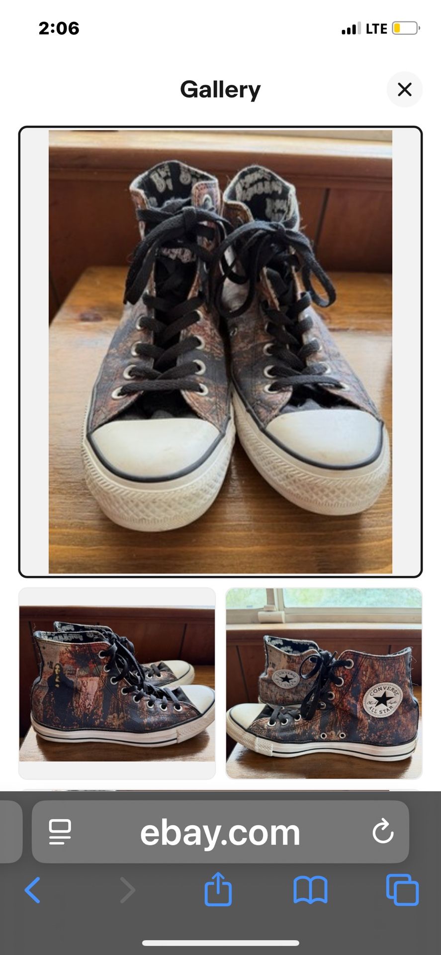 HI I HAVE THESE NEW CONVERSE CHUCK TAYLOR BLACK SABBATH EVIL WOMAN LIMITED EDITION SIZE 10.5 IN MENS. FOR SALE NO BOX. OR TRADE FOR NEW BABY CLOTHES FOR A NEW BORN UP TO 3 MONTHS BABY BOY.