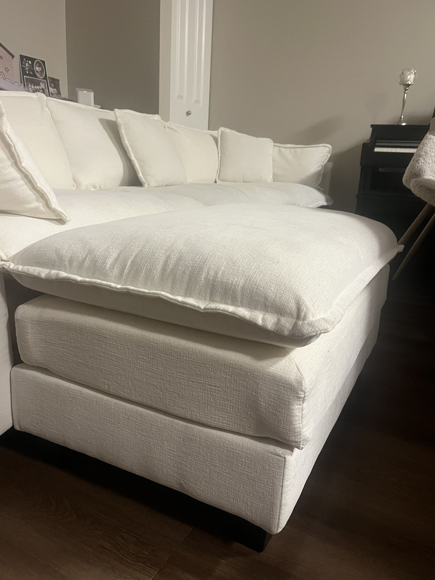 I have had this couch a little over a year and I love it but got a new couch from a friend so dont need anymore. Its a beige/white color and is a 111.4in