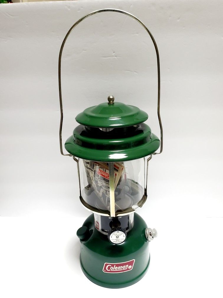 The Vintage Coleman 220K Double Mantle Lantern, made in the USA in June 1983