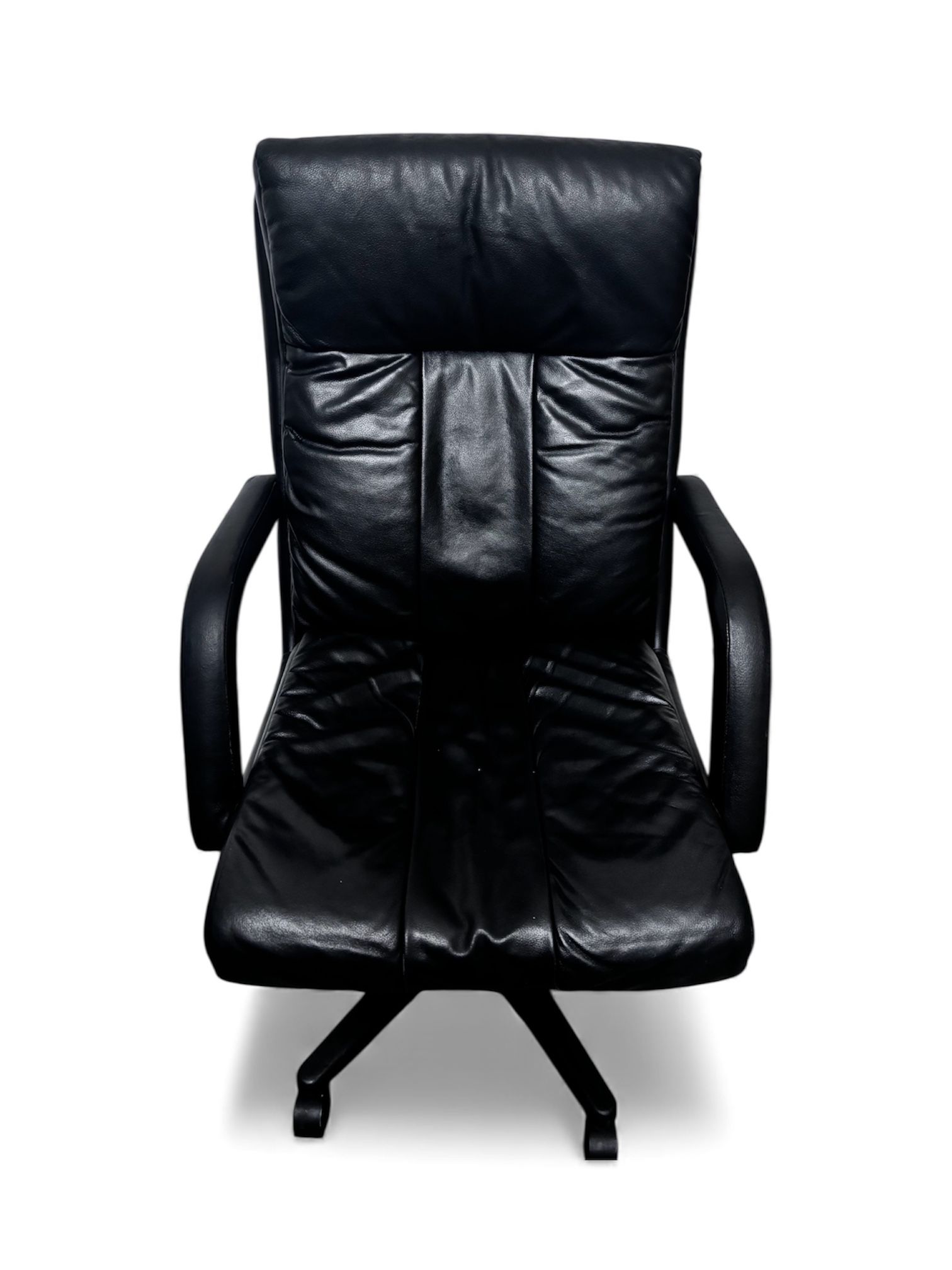 Comfortable black rolling office chair with a supportive high back and armrests. Smooth-rolling wheels and a solid base make it great for a desk or workspace. Clean, professional look. • Comfortable padded seat • Rolling wheels • Armrests • Sturdy construction • Used, good condition with normal wear First come, First Served. Buyer pickup only.