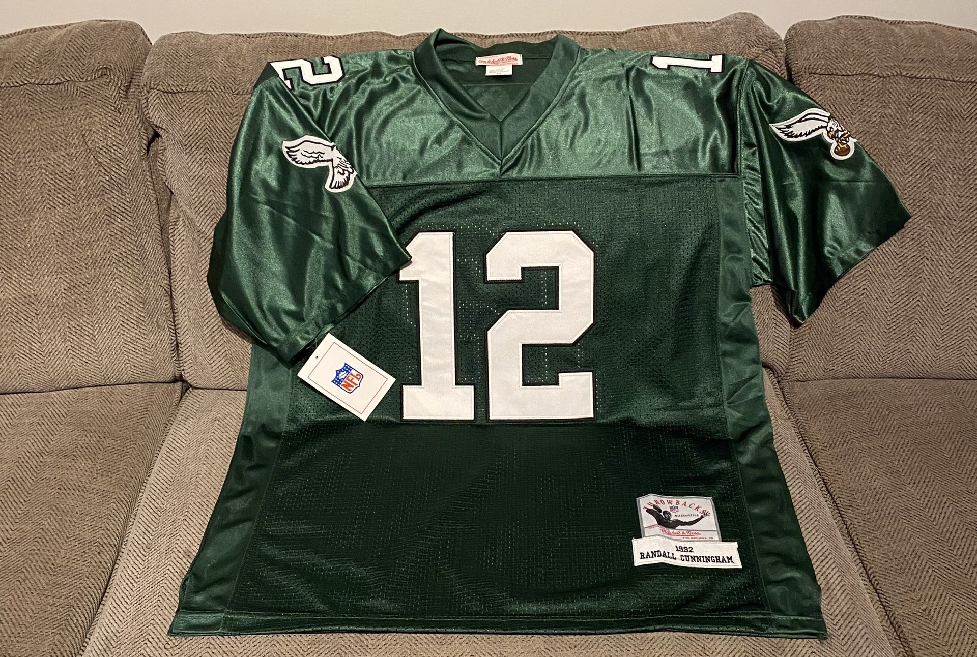 Brand new Randall Cunningham Kelly green Eagles jersey. Size L. Price $65. All letters and numbers are stitched and sewn. Local pick up only. I’m located in Malvern Pa. Message me for pick up details or any other questions you may have.