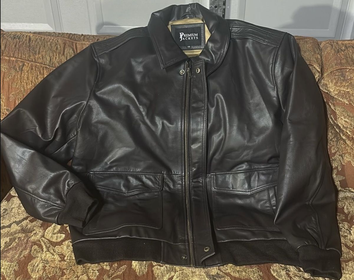 SHIPPING AVAILABLE $20 for shipping βπ»βπ»βπ»βπ»βπ»βπ»βπ»βπ» These jackets are from our previous collection, so weβre offering them here at much lower prices than on Amazon. Weβre making space for our new collection. Brand New Genuine Leather Jacket β Size 4XL Beautiful, stylish genuine leather jacket in size 4XL. This jacket is brand new and never worn β Real / genuine leather (not faux) β Soft, premium-quality leather β Clean, smoke-free & pet-free home β Perfect for fall & California winter Condition: New Size: 4XL Material: Genuine leather Colour: dark brown Mens real leather jacket in dark brown color size 4XL With 2 side pockets Real goat skin leather Best gift for mens heavy excellent quality leather