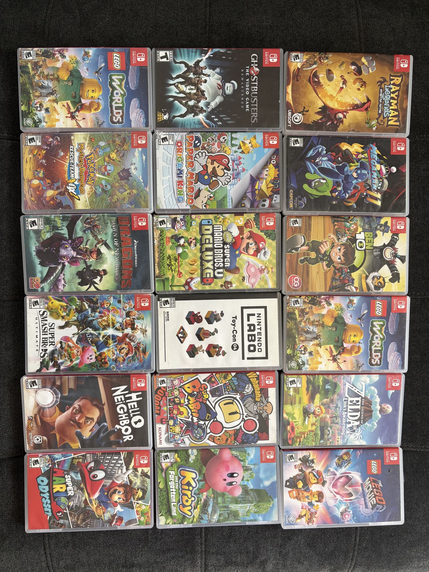 Shoot me your offers LEGO Worlds $13 Pokémon Mystery Dungeon: Rescue Team DX $28 Dragons: Dawn of New Riders $14 Super Smash Bros. Ultimate $38 Hello Neighbor $13 Super Mario Odyssey $38 Ghostbusters Remastered $16 SOLD Paper Mario: The Origami King SOLD Super Mario Bros. U Deluxe Nintendo Labo Toy-Con 04 (VR Kit) $10 Super Bomberman R $13 Kirby and the Forgotten Land $42 Rayman Legends Definitive Edition $13 Mega Man 11 $16 Ben 10 $12 LEGO Worlds (2nd copy) $13 Zelda: Link’s Awakening $38 LEGO Movie 2 Videogame $12