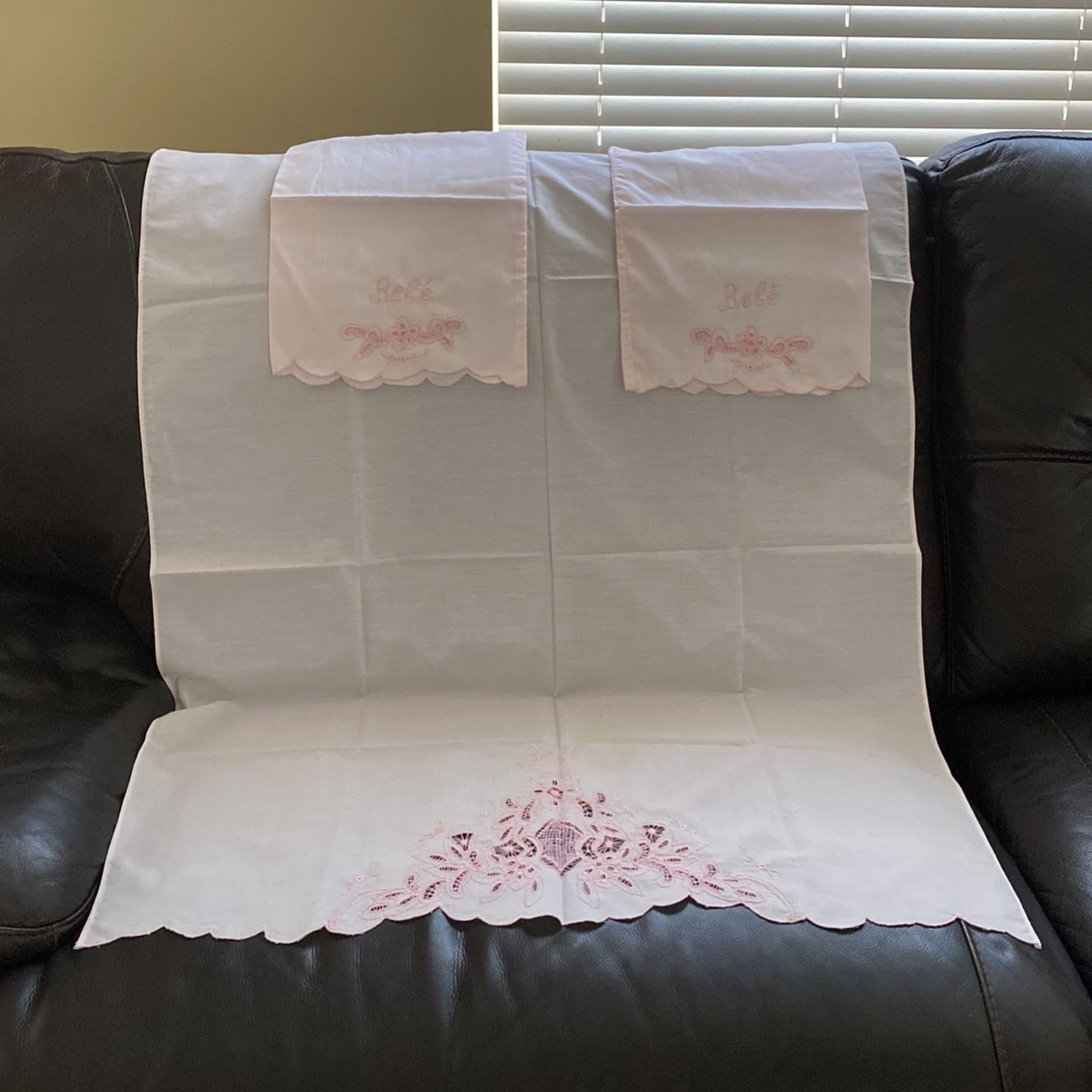 Vintage embroidered baby Sheets with 2 Pillowcases