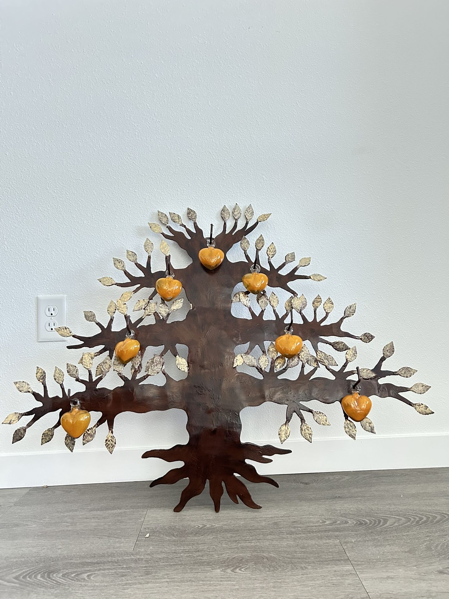 Beautiful handcrafted metal Tree of Life wall art with hanging glass hearts. This unique piece adds a warm and artistic touch to any living room, entryway, or hallway. ✨ Features: • Large metal Tree of Life design • Handcrafted with intricate leaf details • Adorned with several glass hearts for a charming accent • Rustic bronze and copper tones • Lightweight yet sturdy, easy to hang • Perfect as a statement piece of wall décor