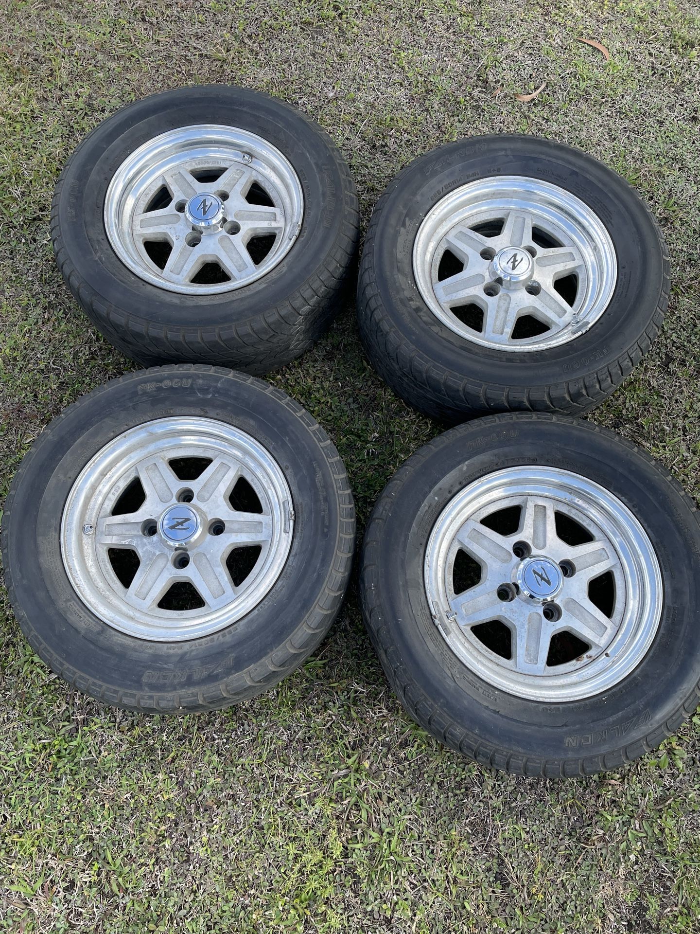 OEM Datsun 280Z rims with tires. Wheels are in great condition. I have not cleaned them at all to dress them up for this ad and the tires are falkens and are in OK condition from what I can see. If the ad is up they are available no lowball offers thank you.