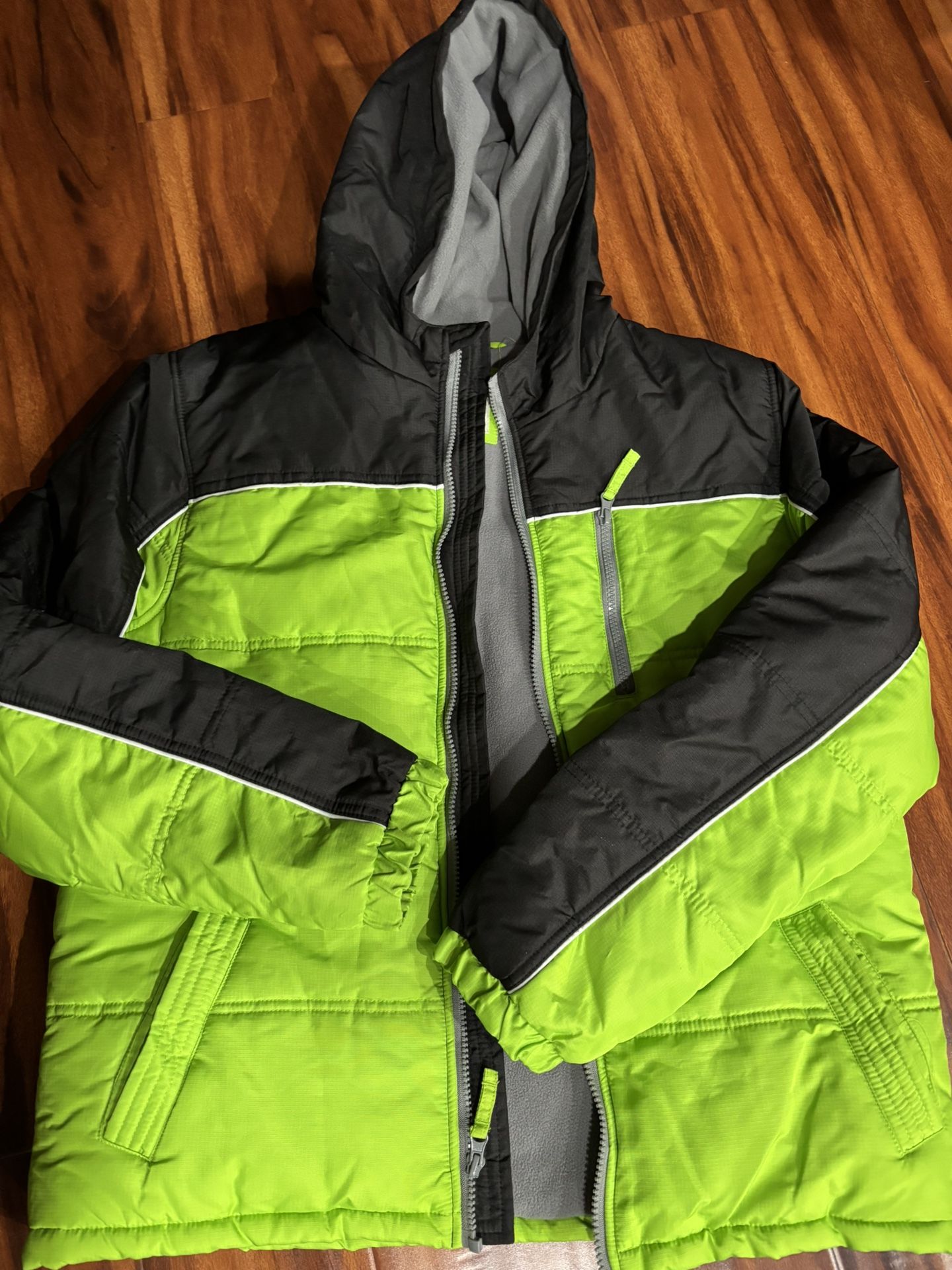 Snow jacket , quilted with fleece lining inside With hood, full zipper, two pocket with zipper. XL size has zipper chest pocket too Good for ski / snowboarding / snow play or for regular winter protection. In perfect condition. No tear, no stain , fully functional zip. Used less then ~5 time Green is size XL (18/20) Orange is size L (14/16) $25 each obo