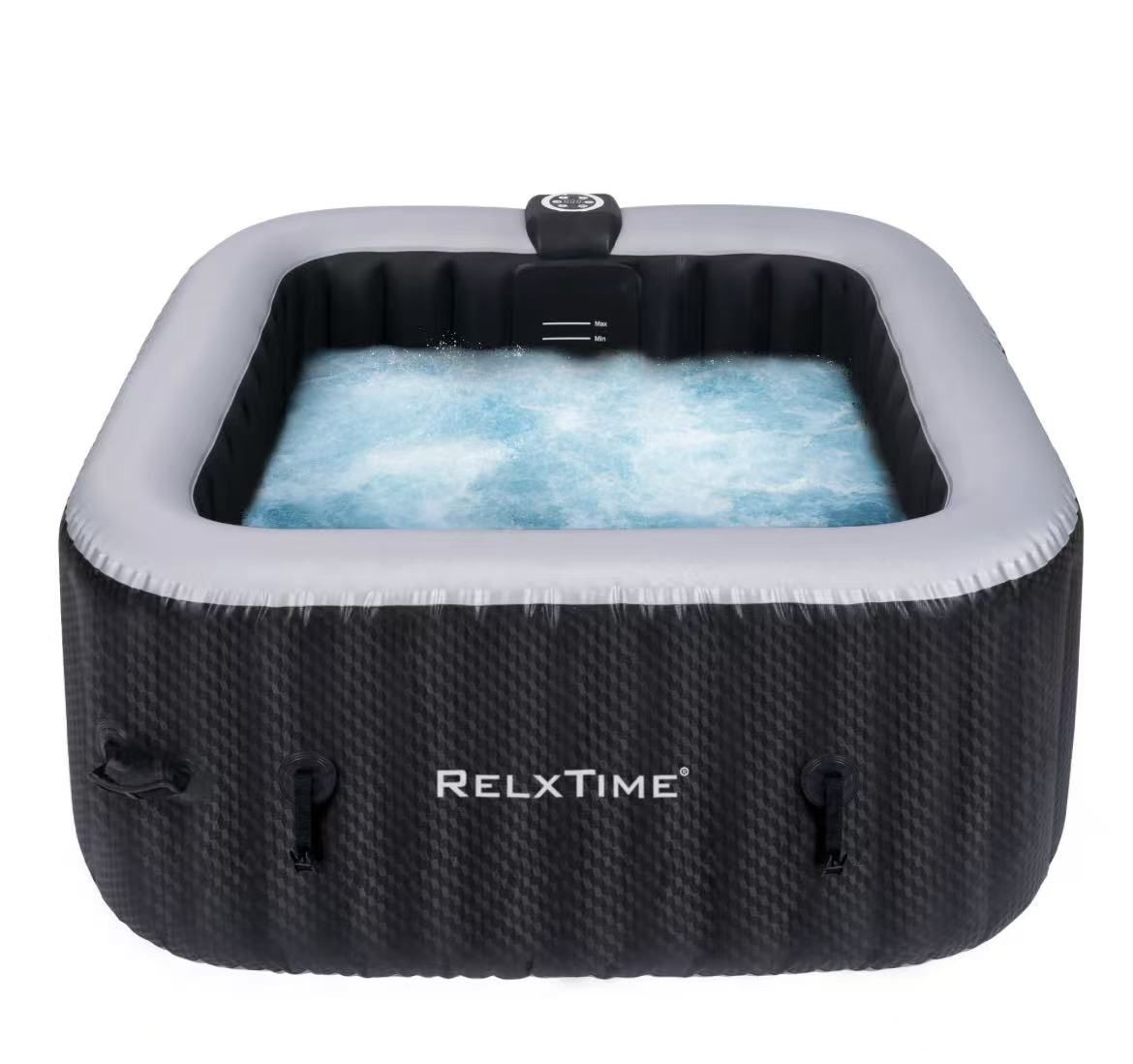 RELXTIME 2-3 PERSON SQUARE INFLATABLE HOT TUB 120 MASSAGING AIR JETS BLACK LAMINATED CLASSIC SPA - HS004 $300