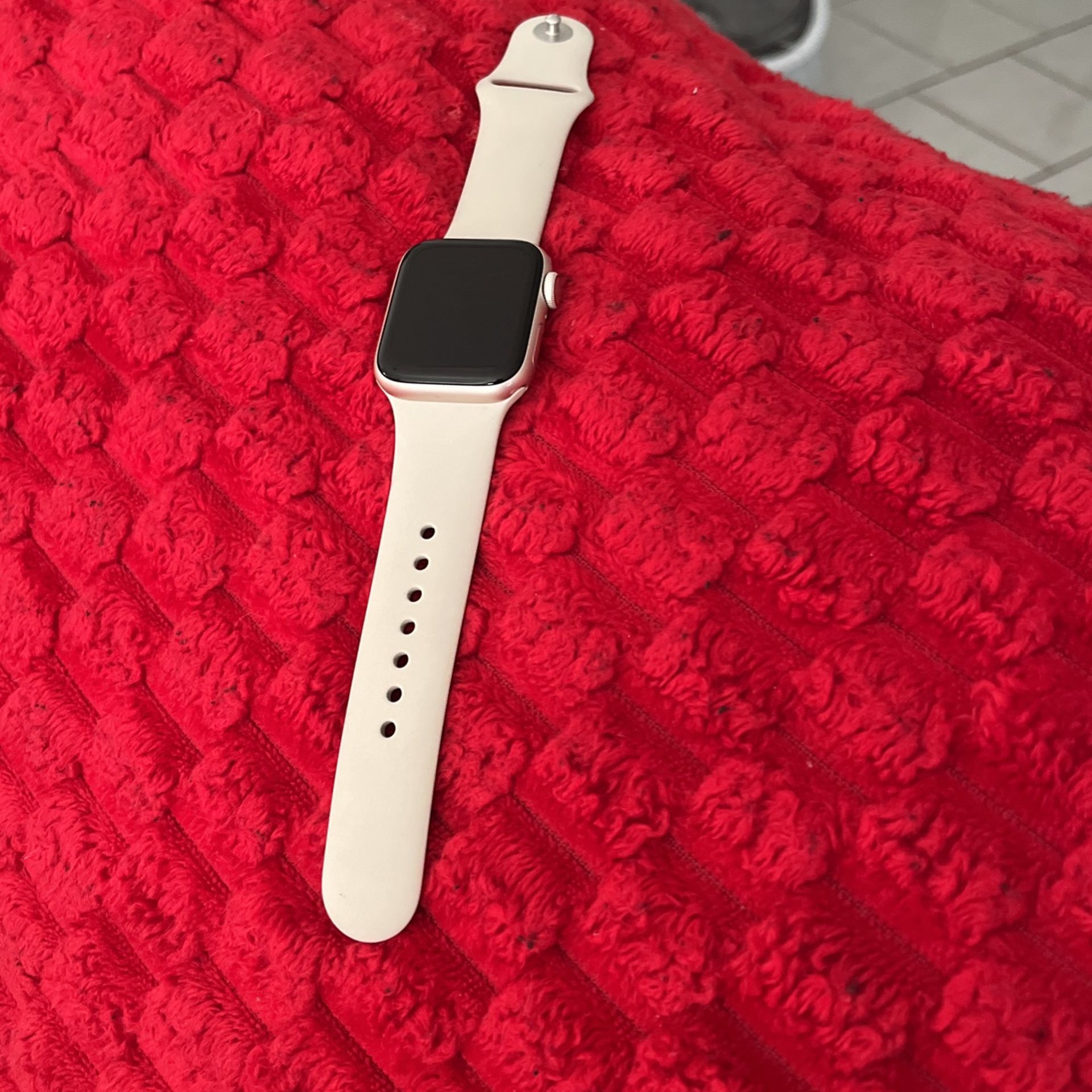This is a brand new apple watch only worn once or twice. Color being Aluminum starlight . It also comes with the charger &m