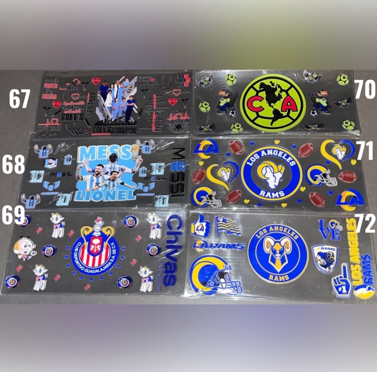 Multiple available of each design $5 x 1 $20 x 5 $42 x 12 $125 x 50 $200 x 100 *More designs available on my page #rams #soccer #chivas #messi #greys anatomy