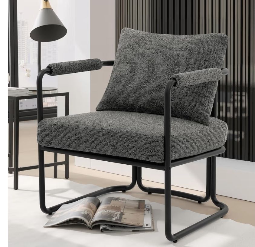 Single Accent Chair for Living Room, Mid Century Modern Upholstered Reading Armchair for Bedroom, Office, with Comfy Chenille Cushion & Metal Frame, Dark Grey
