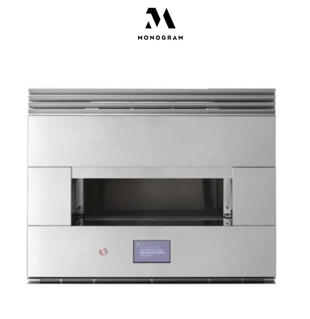 RETAIL PRICE: $9,000.00 Monogram 30 Inch Wide Smart Flush Hearth Oven Model:ZEP30FRSS Finish: Stainless Steel Features: * 1.23 cubic feet provides enough room for a variety of dishes * Stainless steel exterior provides a timeless look that stands out in any kitchen * Easily adjust oven settings with touch controls * Installs flush for a look of seamless perfection with the surrounding cabinetry and requires no additional ducting * Manufacturer warranty includes 2 year limited coverage * Made in America Product Technologies: * Brick Oven Performance: Each electric hearth oven is handcrafted to capture the performance of a wood-fired brick oven and perfectly prepare Neapolitan-style pizzas, soft artisanal bread, or a whole roasted branzino. * Electric Heating Zones: Combine the crisping performance of traditional coaland wood-burning hearth ovens with the precision and ease of a luxury appliance. * Capacitive Touch LCD Controls: Allow for easy selection of preset cooking options. Specifications: * Total Capacity: 1.23 Cu. Ft. * Volts/Hertz/Amps: 240/208 V, 60 Hz, 50A * Convection: Yes * Width: 29-3/4" * Height: 23-9/16" * Depth: 24-1/2" * Cutout Width: 29-15/16" * Cutout Height: 23-11/16" * Cutout Depth: 24-15/16"