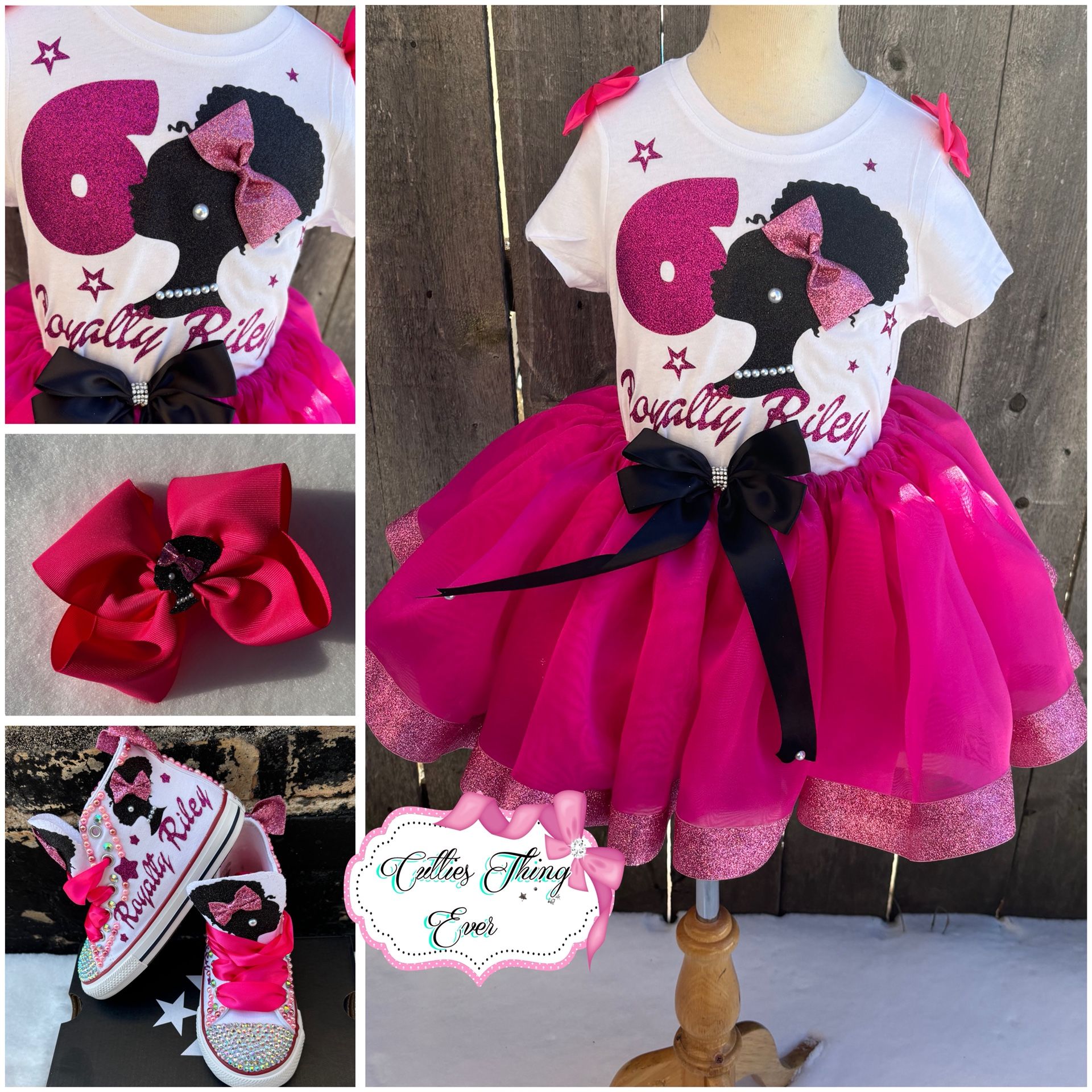 Handmade and by order the set includes shirt tutu and hairbow the price depends on the size and the set .Shoes are seperate