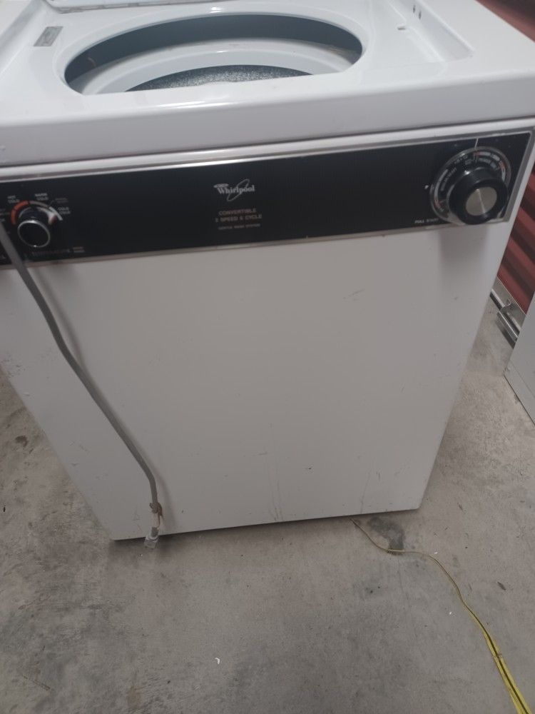 Whirlpool, 24 inch apartment size washing machine top loading works.Good thirty day warranty delivery available