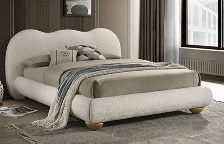 Onlinefurniturebroker.com βπ« We do not have a showroom. We deliver directly from the manufacturer to your home π . π Delivery is only $40 π οΈ Assembly is an extra charge. Price on assembly depends on which item you order! π΅ We accept cash on delivery Mattresses are sold separately π₯We are voted #1 on offer up, please also view other options on our page!!! Beds, bedroom sets, sectional, sofas, daybed, futon, vanity, dining set, chairs, recliner, Loveseat, dresser, queen bed, king bed, desk, kitchen cabinets, shaker cabinet FM72005WH Contemporary White/Natural Oak Boucle Fabric, Solid Rubberwood, Engineered Wood Camel-Back Shaped Headboard Round Bun Wood Feet Mattress Ready E.King Bed. 92.5"W X 90.5"D X 40.5"H Queen Bed. 77"W X 90.5"D X 40.5"H