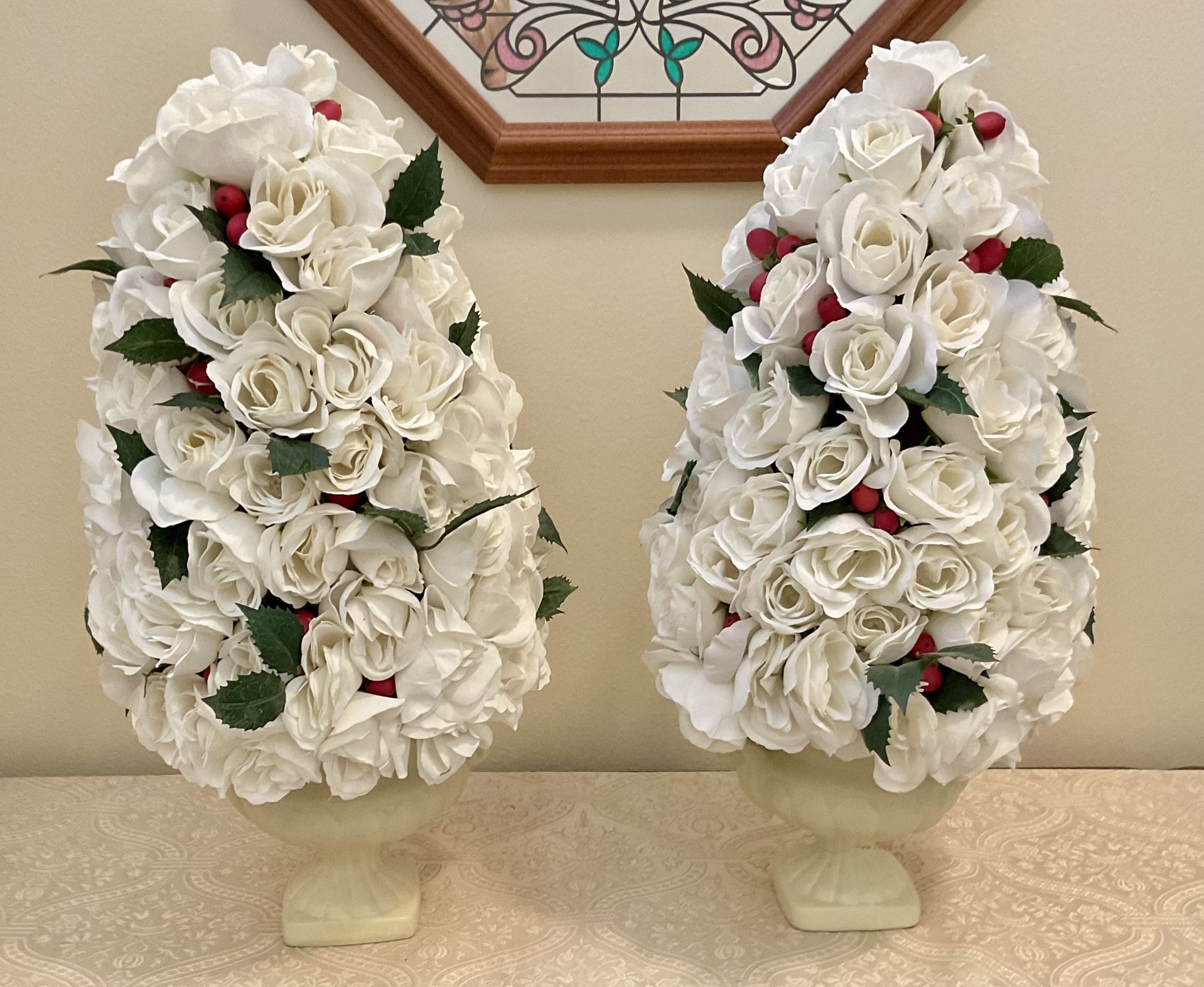 LENOX 2 LARGE 22” ELEGANT TOPIARY PLANTS DECOR WHITE ROSE RED GREEN