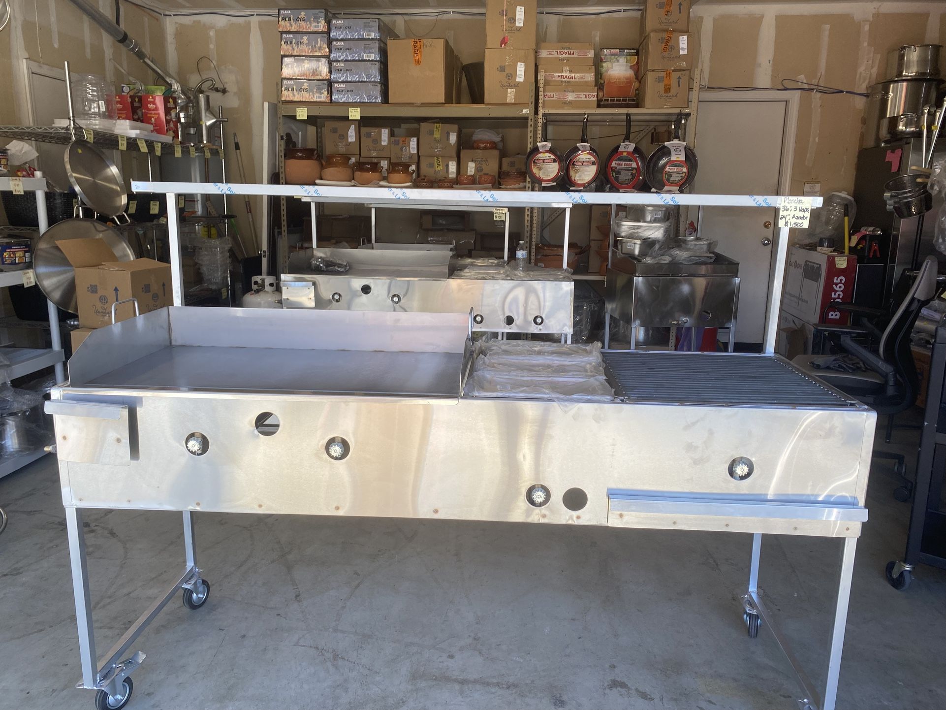 Plancha 36”,3 Vaporeras, 24” Azador Es Nueva Las patas y mesita son remobibles