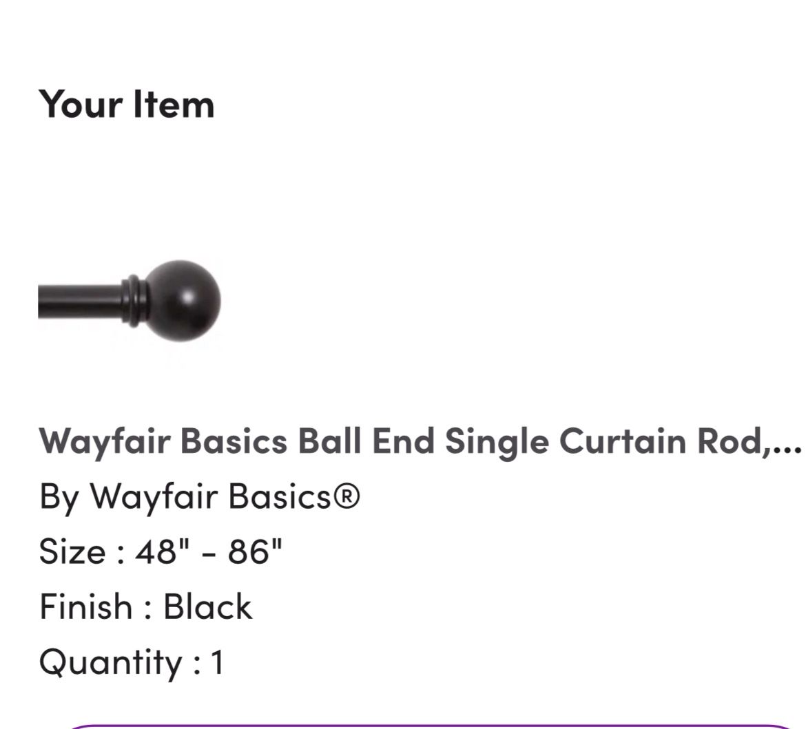 New, never opened black curtain rod. 48–86” Perfect condition.
